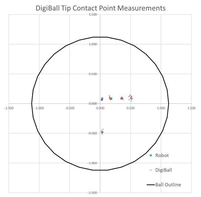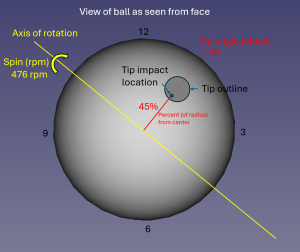 Yes. Exact tip location is displayed graphically, and as a percentage of ball radius from center.